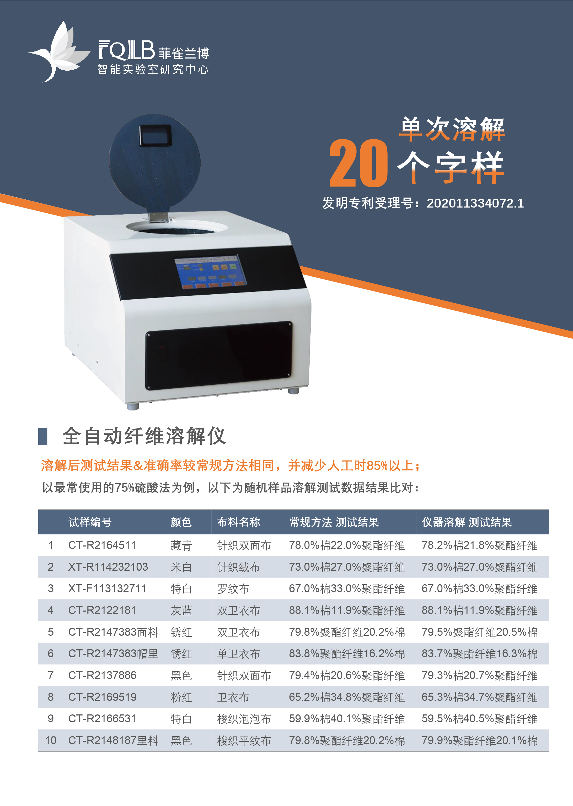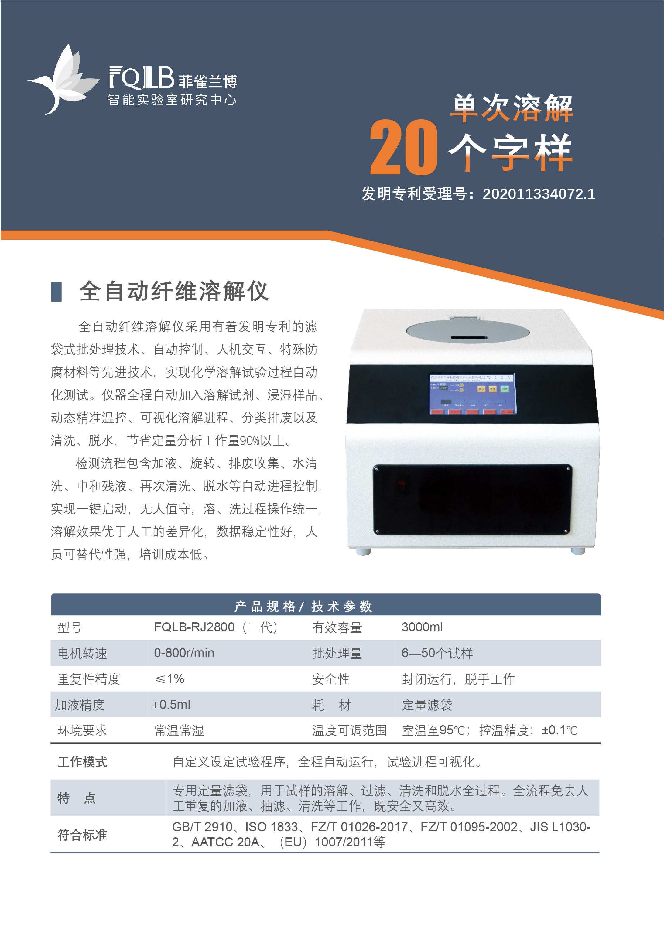 全自动纤维溶解仪采用有着发明专利的滤袋式批处理技术、自动控制、人机交互、特殊防腐材料等先进技术,实现化学溶解试验过程自动化测试。仪器全程自动加入溶解试剂、浸湿样品、动态精准温控、可视化溶解进程、分类排废以及清洗、脱水,节省定量分析工作量90%以上。